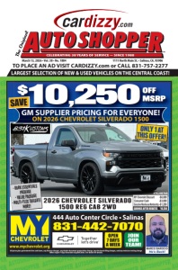 LARGEST SELECTION OF NEW & USED VEHICLES ON THE CENTRAL COAST! TO PLACE AN AD VISIT CARDIZZY.com or CALL 831-757-2277 1111 North Main St. • Salinas, CA. 93906 March 13, 2026 • Vol. 38 • No. 1884 ™ CELEBRATING 38 YEARS OF SERVICE ~ SINCE 1988 All prices plus government fees and taxes, any finance charges, any dealer document preparation charge, any electronic filing charges, and any emission testing charge. Offers expire 7 days from date of publication. See dealer for details. JOIN OUR TEAM! 831-442-7070 444 Auto Center Circle • Salinas www.mychevrolet.org OPEN 7 DAYS A WEEK MARCO BAROCIO He’s Back! 2026 CHEVROLET SILVERADO 1500 REG CAB 2WD • DARK ESSENTIALS PACKAGE • VALUE PACKAGE • MULTI-FLEX TAILGATE MORE! GM SUPPLIER PRICING FOR EVERYONE! ON 2026 CHEVROLET SILVERADO 1500 ONLY 1 AT THIS OFFER! SAVINGS AFTER REBATES $10,250 MY Chevrolet Discount -$6,000 Consumer Cash -$3,000 Executive Warehouse Membership -$1,250 #TG240760 ARGEST SELECTION OF NEW & USED VEHICLES ON THE CENTRAL COAST! $10,250OFF MSRP SAVE